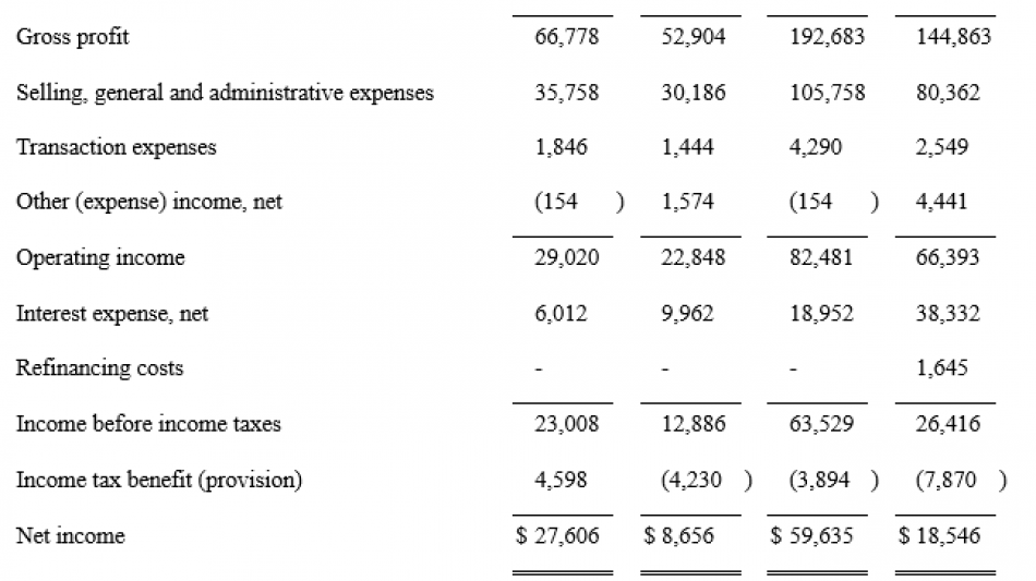 Das bereinigte EBITDA betrug im Quartal 49,1 Millionen $, das ist ein Plus von 28,9 % bzw. 11,0 Millionen $ im Vergleich zu demselben Quartal des Vorjahres. Das bereinigte EBITDA als Prozentsatz des Nettoumsatzes belief sich auf 38,7 %, verglichen mit 36,8 % im dritten Quartal des Vorjahres. Die Zunahme des bereinigten EBITDA als Prozentsatz der Nettoumsätze ist auf die fortlaufende Umsetzung unserer strategischen Werttreiber, die positiven Auswirkungen des gestiegenen Absatzes margenstärkerer Produkte und die Hebelwirkung des höheren Umsatzes auf die Betriebskosten zurückzuführen.