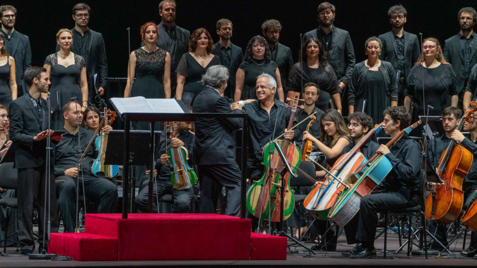 (di Elisabetta Stefanelli) Il muro della cava in cui è scavato il teatro di Lampedusa è una parete di pietra che s'illumina di candele, metafora potente di un confine che nell'isola evoca il dramma dei migranti, ed è un giallo sabbioso (''sembra quasi venga dall'antico Egitto'' dice Muti) graffiato da segni che sembrano croci, che assorbe e rimanda i suoni dei coloratissimi strumenti dell'Orchestra Luigi Cherubini- in tutto 15 sul palco - realizzati con le assi dei barconi che li hanno portati fin qui dal laboratorio che si trova nel carcere di Opera, iniziativa della Fondazione Casa dello Spirito e delle Arti che li ha messi a disposizione per l'occasione e nati da un'intuizione di Arnoldo Mosca Mondadori. ''Legni di morte e legni di speranza, che hanno trasportato donne, uomini e bambini in un viaggio che a volte li ha portati in salvo, altre li ha trascinati in fondo al mare'', dice il maestro Riccardo Muti che non si risparmia e quest'anno ha portato fin qui la XXVIII edizione de Le vie dell'Amicizia, che il Ravenna festival questa volta dedica al viaggio dei migranti, idea di salvezza che troppo spesso si trasforma in tragedia e che Muti fa sua in una perfetta, quanto accorata, esecuzione. ''Oggi siamo andati alla Porta d'Europa di Mimmo Paladino - racconta ancora Muti - da cui si entra simbolicamente in Italia e in questo continente che è, e deve continuare ad essere, luogo, faro di cultura. I migranti non li dobbiamo solo salvare ma è del dopo che ci dobbiamo preoccupare ed è il mondo intero che se ne deve preoccupare non solo l'Italia'', per il maestro ''sono affermazioni dal valore politico ma in senso alto, non di partito, parole di una persona che crede nella fratellanza''. Il maestro pensa che sia preoccupante ''il fatto che in Europa stia diminuendo l'interesse per la cultura, qui si parla solo di guerre mentre la città di Seul ha venti orchestre e in Cina costruiscono grandi teatri e si comportano come facevano gli antichi romani assorbendo il meglio delle altre civiltà. La musica è un elemento connettivo che va coltivato e rilanciato. L'Europa non deve parlare solo di mozzarelle ma deve investire in cultura''. E continua con la sua solita energia: ''Sono tantissimi gli elementi simbolici in questo concerto, tutti complementari, evocativi. Per questo per me è uno dei viaggi dell'Amicizia più importanti, più significativi da quella prima volta, nel 1997, a Sarajevo. Poi l'altro che mi è rimasto nel cuore è stato quello ad Erevan ed Istanbul, con lo scambio tra gli artisti, era la prima volta che accadeva una cosa simile''. Un concerto importante quello di Lampedusa ''che vuole essere un omaggio a tutta l'isola e alla sua gente, nella sua grande generosità'' in cui però spiccano le assenze istituzionali. ''Ci sono io! Non basto?'', risponde con una battuta Muti a chi glielo fa notare, però non mancava sotto il palco Claudio Baglioni. Così ieri sera nel Teatro naturale della cava, si è alzato il lamento lacerante del bellissimo Stabat mater che Giovanni Sollima ha composto su versi di Filippo Arriva in antico siciliano: ''dovrebbe diventare un pezzo di repertorio'', commenta Muti. Per lo Stabat Mater, all'Orchestra Giovanile Luigi Cherubini e al Coro della Cattedrale di Siena Guido Chigi Saracini preparato da Lorenzo Donati si uniscono il bravo controtenore Nicolò Balducci, Lina Gervasi al theremin (che però a Lampedusa si blocca per l'umidità altissima che bagna strumenti e spettatori) e lo stesso Sollima in un meraviglioso assolo con il suo violoncello striato di bianco rosso e verde che lascia senza fiato, ripercorrendo quel dolore universale che non è solo di Maria per la morte di Cristo ma di tutte le madri che perdono un figlio, cullandolo alla fine in una straziante ninna nanna senza ritorno. Il programma musicale della serata però si apriva - dopo la banda dell'associazione Lipadusa e il Coro a coro di Rachele Andrioli con il canto delle madri palestinesi - con l'originale Līmen | Samia | līmen, una molto evocativa composizione elettroacustica commissionata dal Festival ad Alessandro Baldessari, componente della Cherubini come contrabbassista che ha firmato anche le musiche originali e gli arrangiamenti dello spettacolo Non dirmi che hai paura, primo atto de Le vie dell'Amicizia in scena al Teatro Alighieri di Ravenna l'8 luglio (il concerto prima di Lampedusa è stato a Ravenna e sarà trasmesso l'8 agosto su Rai1 con inserti da Lampedusa e dello spettacolo), dedicato alla storia della velocista somala Samia Yusuf Omar, fra coloro che hanno perso la vita in fuga da guerra, povertà e carestie, e orchestrata da Claudio Cavallin. Qui è il mare che prende il sopravvento con quel fondo leggermente dissonante che domina tutto il concerto, come salisse un canto dal fondale che è un lamento, dolcissimo, ma un lamento che prende il cuore.