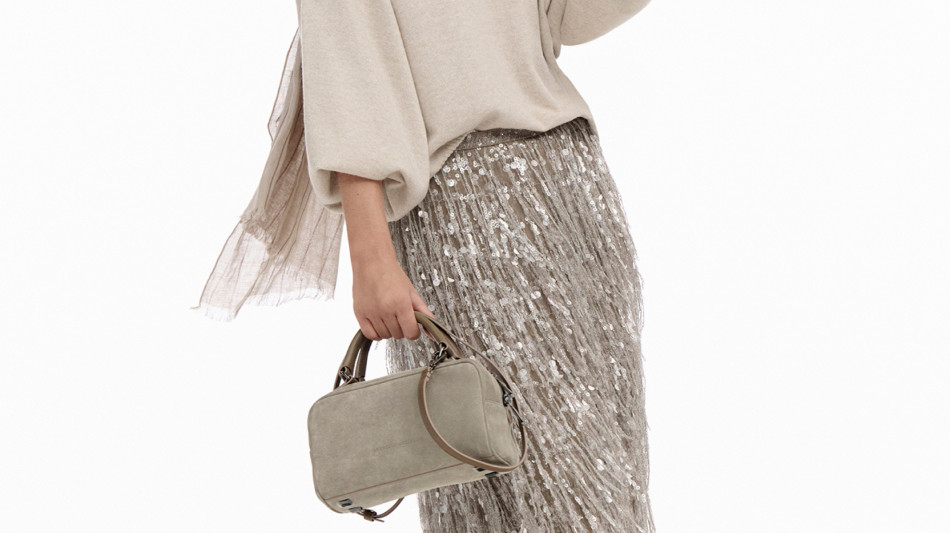 La Collezione Donna Primavera/Estate 2025 di Brunello Cucinelli compie un immaginario, un grand tour dalle riviere più famose alle dune del deserto. Il viaggio stilistico compone un mondo elegante e rilassato, ricco di contenuti sartoriali e artigianali, attraversato da contaminazioni e connessioni. Tailleur impeccabili fondono maschile ed esotico con una predilezione per il valore della forma. I classici intramontabili sono impreziositi da un tocco di leggerezza, mentre citazioni utility introducono echi funzionali su tessuti eterei e femminili per blazer, gonne e pantaloni. La maglieria è il punto di riferimento dell'esplorazione e della sperimentazione: punti a rete giocano con geometrie morbide, volumi impalpabili sono percorsi da ricami effetti craquelé, preziosissimi macramè danno vita a fantasie tridimensionali. Il filato rinasce ancora, prezioso e naturale, libero o intrecciato, come raffinata disegnatura, frangia raw sparkling o fluida texture metallica. I colori sono quelli del deserto e della natura, ma anche i toni dell'azzurro e del mare.