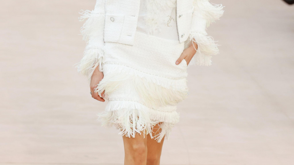 (di Patrizia Vacalebri) Con la nuova collezione per la Primavera/Estate 2025, leggera e ricca di tessuti come lo chiffon, l'organza e la seta che imitano la leggiadria delle piume, Chanel rende omaggio alle donne che si sono liberate dallo sguardo ingombrante della società, proprio come lei, la fondatrice della maison francese, Mademoiselle Gabrielle Coco Chanel. La sfilata della nuova collezione, realizzata dal team creativo che attende ancora un nuovo direttore dopo l'addio di Virginie Viard, si svolge di nuovo al Grand Palais, un simbolo architettonico della capitale che è sfondo delle sfilate parigine della maison dal 2005. Chanel ha sostenuto l'eccezionale restauro e la ristrutturazione di questo gioiello architettonico, cornice di alcuni degli arredi più spettacolari. La sfilata di oggi segna il ritorno nella prestigiosa location. Anche il teaser della collezione è stato girato nel cuore della sua Navata. Con un fascino determinato, indossando una tuta in faille nera con un colletto di piume, la modella Nigina Sharipova spinge le porte dell'ingresso 'Gabrielle Chanel', recentemente intitolato in omaggio alla fondatrice della maison. Nella Navata del Grand Palais, prima della sfilata, i fotografi Inez & Vinoodh immortalano le modelle Ella Mccutcheon e Nigina Sharipova in tre silhouette diafane della collezione. Un mantello celeste e bianco impreziosito da piume e petali di chiffon, allacciato al colletto con un lungo nastro nero, è indossato su jeans svasati ricamati. Esprimendo l'idea del volo, grandi piume sono ricamate su un abito-camicia in organza di raso nero o stampate su una camicetta e pantaloni in charmeuse di seta grigio chiaro, evidenziati da una treccia di paillette argentate. Un'ode alla delicatezza e alla trasparenza, sotto la luce che filtra attraverso il grande tetto in vetro della Navata. Nel defilé le modelle attraversano la pedana che gira attorno a una maestosa gabbia per uccelli. Un invito, secondo le intenzioni del team creativo della maison, "a librarsi, a volare, ispirato all'oggetto decorativo in miniatura presente nell'appartamento di Gabrielle Chanel, al 31 di rue Cambon a Parigi", spiega la maison. In nome di una libertà anche creativa, a questo punto, per il giorno escono mantelle di chiffon, gonne con spacchi, pantaloni ampi e fluidi, short e minigonne, nei tipici tessuti bouclé, a tinta unita, ma anche a quadretti Vichy, oppure a disegni di finestrati delicati. Le giacche dei tailleur sono lavorate con inserti di chiffon perché la collezione vuole essere "un inno alla libertà, alla delicatezza, alla leggerezza e al movimento". I colori sono del guardaroba day time sono i pastello: bianco, rosa bocciolo, verde chiaro, arancio pallido, pesca. La sera dominano il lungo, il nero e i decori preziosi e scintillanti.