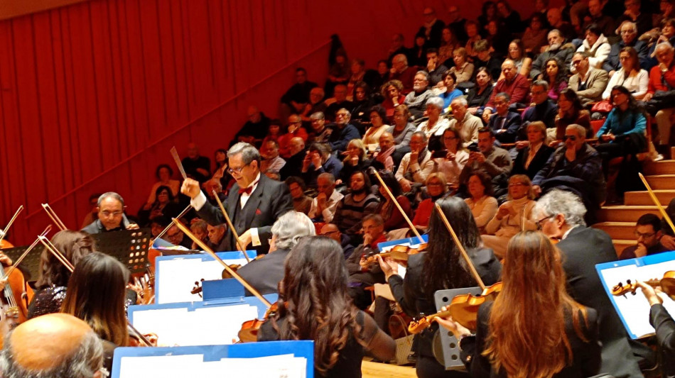 Gli applausi che accompagnano la Marcia di Radetzky, consueto bis nelle scalette di Capodanno dell'Orchestra da Camera aquilana, sembrano scandire l'avvio di un conto alla rovescia speciale per L'Aquila: quello dei dodici mesi che la separano dal 2026, l'anno in cui è stata designata Capitale della Cultura. Dodici mesi per ritrovare una luce e un'eleganza tra i segni di un terremoto ben evidenti ancora dopo 15 anni. Così, anche i classici tra i più classici di Johann Strauss figlio, tra valzer e polke, suonano all'interno del ritrovato Auditorium del Parco con una tensione speciale ben catturata dagli arrangiamenti del maestro Carmine Gaudieri. Quello che per tante città è un appuntamento canonico, si trasforma nel capoluogo come un rituale collettivo che, edizione dopo edizione, sa di rinascita. Il repertorio di Strauss che contempla anche valzer come 'Voci di primavera', 'Sul bel Danubio blu' o il 'Kaiser valzer', è anticipato dall'Ouverture da 'Le nozze di Figaro' di Mozart, dalla sequenza di pizzicati tratti dal balletto 'Sylvia' e dal 'Can Can' di Jacques Offenbach. C'è spazio anche per un estratto strumentale adattato da 'Carmen - Habanera' di Georges Bizet e per un piccolo omaggio allo 'Schiaccianoci' di Tchaikovsky. Ad accompagnare il pubblico, la voce narrante di Simonetta Bisegna per un'iniziativa a cura dell'associazione Athena che ha fatto registrare il tutto esaurito. Una giornata in ogni caso straordinaria, quella del 1° gennaio, con condizioni di meteo favorevoli a spingere migliaia di persone sulle piste da sci del comprensorio, tra Campo Felice e Campo Imperatore. In contemporanea, una delegazione di runner di Atletica Abruzzo L'Aquila ha rinnovato la tradizionale corsa simbolica in montagna, dal convento di San Giuliano alla Crocetta, passando per Madonna "Fore". Affollati i mercati di Natale sulla centralissima Corso Vittorio Emanuele, in un percorso verso la centrale piazza Duomo, denso di sapori, odori di spezie e incenso, suoni. "Dobbiamo amare la nostra città rinata", è l'auspicio espresso per il 2025 dal sindaco dell'Aquila, Pierluigi Biondi.